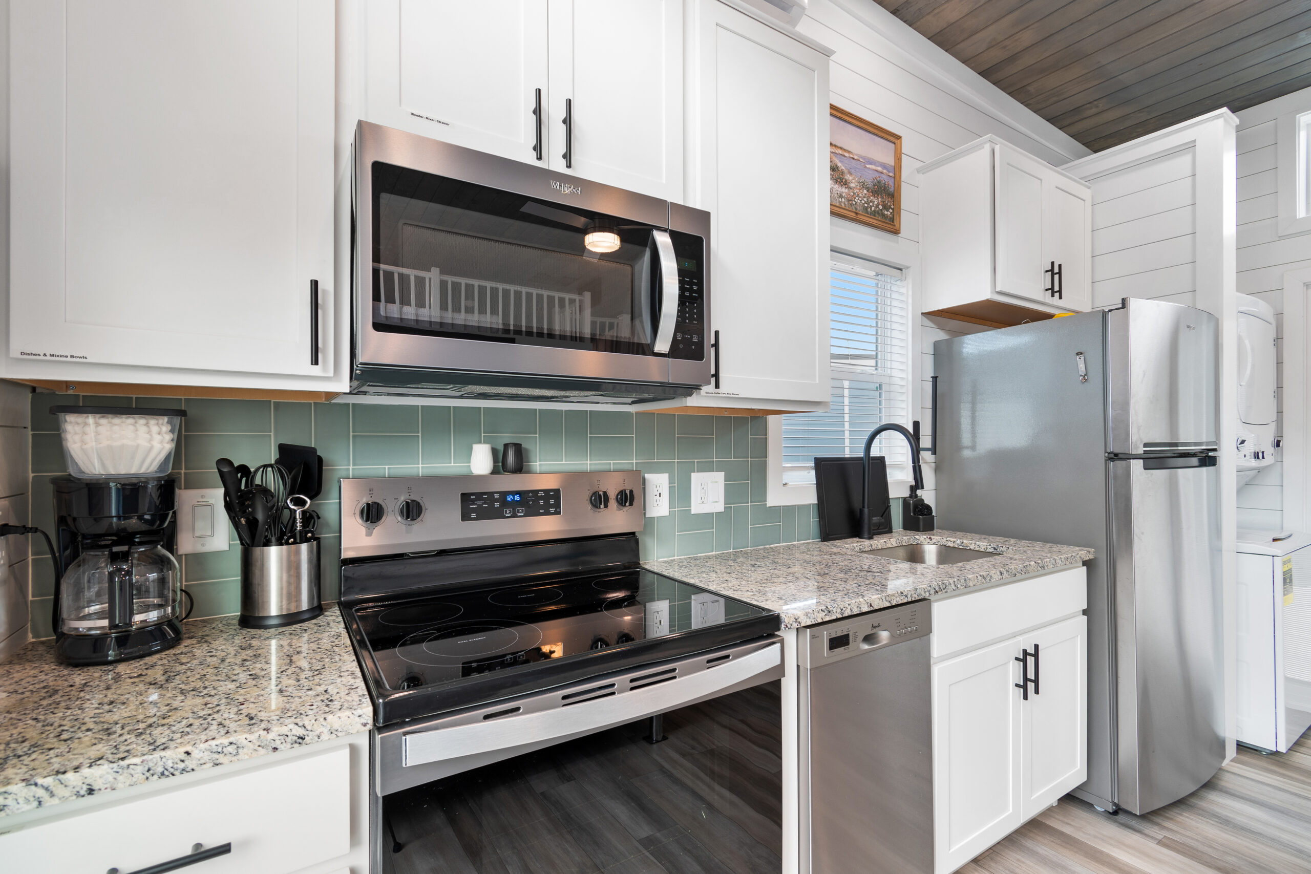 Kitchen: Modern full kitchen — granite countertops & full-size appliances